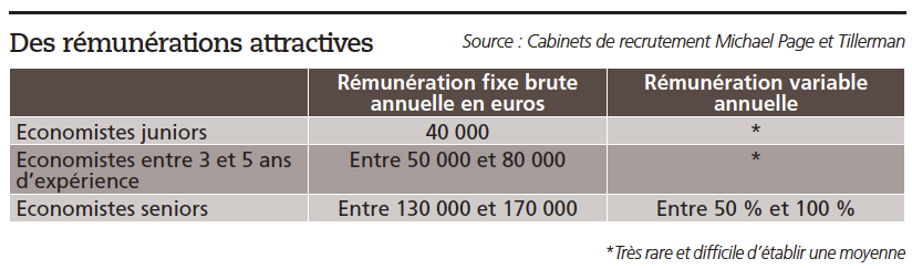 Laurent Clavel a été nommé économiste international senior chez Axa IM en septembre dernier, tandis que Frederik Ducrozet, a rejoint Pictet Wealth Management ce mois-ci en tant qu’économiste responsable de l’Europe. Plusieurs économistes sont ainsi récemment venus étoffer les équipes des sociétés de gestion. Rares pour être notées, ces nominations montrent aujourd’hui l’importance que revêt le métier d’économiste. Qu’il soit exercé dans une société de gestion, une banque, une compagnie d’assurances ou même en entreprise, ce dernier présente la même caractéristique. «Le rôle des économistes consiste à analyser les tendances sur les marchés en s’appuyant sur une vision d’ensemble pour une zone géographique ou un secteur d’activité donnés», explique Anne-Sophie Luçon, manager exécutif senior de la division banque et assurance de Michael Page. De leur analyse dépend ensuite toute la stratégie de la structure dans laquelle ils travaillent. «Ils doivent faire preuve d’un très haut degré de précision car les décisions qu’ils prendront auront une grande influence», souligne Anne-Sophie Luçon. De ce fait, les économistes travaillent généralement en lien étroit avec la direction. Dans le cadre d’une petite équipe, comme chez CPR AM qui emploie trois économistes ou chez Saxo Bank qui dispose d’un unique économiste pour la France, ils sont placés sous la supervision du directeur général. Lorsque les effectifs sont plus importants, ils sont le plus souvent encadrés par un chef économiste. «Celui-ci supervise généralement des profils juniors et seniors, indique Romain Boisnard, associé au sein du cabinet de recrutement Tillerman. Les premiers sont chargés d’effectuer une analyse quantitative des données, tandis que les seconds, souvent spécialisés par zone géographique, doivent apporter un éclairage plus qualitatif.»