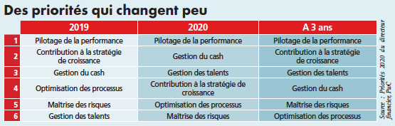 En termes de feuille de route, les années se suivent et se ressemblent pour les directeurs financiers français. Selon l’enquête réalisée par PwC sur les priorités 2020 de ces derniers, le pilotage de la performance apparaît en effet en tête du classement, comme c’était déjà le cas lors des deux années précédentes. Ce constat ressort également des témoignages des huit directeurs financiers d’ETI et grands groupes interrogés par Option Finance. Cherchant à profiter d’environnements économique et sectoriel toujours considérés comme porteurs, leur entreprise devrait continuer à investir, tant à l’interne que par le biais d’acquisitions. Pour accompagner ce développement, les fonctions finance mettent particulièrement l’accent sur l’évolution de leurs reportings, afin que ceux-ci prennent en compte les spécificités des nouvelles activités acquises ou lancées, et qu’ils soient davantage exploitables par les équipes opérationnelles. Un chantier qui sera mené de front avec celui relatif à la modernisation des outils informatiques. Enfin, si la persistance de liquidités abondantes facilite l’obtention de financements, les entreprises continuent de vouloir profiter, tant qu’elles le peuvent, de conditions d’emprunt extrêmement favorables.