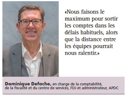 Par ailleurs, d’autres tâches doivent quant à elles toujours être assurées, peu importe si l’activité de la société est affectée ou non, à commencer par la clôture des comptes.«Nous devons toujours continuer à réaliser nos clôtures mensuelles, souligne Dominique Defache. Celles-ci prennent de bout en bout sept jours par mois, deux jours en amont consacrés à la revue du cut-off (vérification que les charges et produits soient comptabilisés à la bonne date de clôture) par le contrôle de gestion, cinq jours pour les autres écritures d’inventaire, l’intégration des systèmes, la préparation des états financiers et la revue analytique. Nous faisons le maximum pour sortir les comptes dans les délais habituels (cinq jours après la fin du mois), alors que la distance entre les équipes et l’organisation globale du télétravail peuvent nous ralentir. Pour mars, les comptes ont été clôturés dans les temps, en dépit d’une journée de retard au démarrage en raison d’un problème de connexion. Je constate une grande solidarité des équipes dans l’atteinte de ces objectifs.»