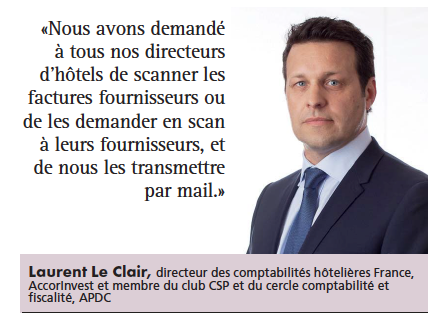 Une fois ces éléments organisationnels réglés, les directions comptables ont dû faire face à une charge de travail inhabituelle. Lorsque l’activité du groupe est particulièrement affectée, les directions comptables ont pu voir leur charge de travail se réduire drastiquement. C’est notamment le cas chez AccorInvest, filiale immobilière à 30 % du groupe hôtelier. «Nous réalisons en ce moment un chiffre d’affaires uniquement sur quelques hôtels qui travaillent avec les hôpitaux, les forces de l’ordre, les SDF, etc., explique Laurent Le Clair. Mais 90 % de nos hôtels sont fermés. Certes, les comptables fournisseurs avaient encore jusqu’à fin mars beaucoup de factures à traiter, et ceux de la trésorerie également car nous avions encore de l’activité dans les jours qui ont suivi les fermetures de mars. Mais depuis, le flux de factures ou d’opérations de trésorerie n’est pas suffisant pour occuper tous nos comptables ; nous avons donc demandé à pouvoir bénéficier du chômage partiel pour l’ensemble de nos comptables pour les mois d’avril et mai.»