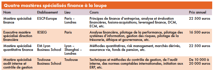 L’engouement des étudiants et des professionnels pour ces formations ne doit cependant pas faire oublier une réalité : par-delà leur contenu pédagogique unanimement reconnu, leur valorisation repose également sur les noms des établissements qui leur sont associés, tout comme les salaires auxquels peuvent prétendre les jeunes diplômés.«Même avec la meilleure volonté, une personne entrant sur le marché du travail n’accédera pas à certaines sphères, dans la banque d’affaires notamment, si elle n’est pas passée par des établissements spécifiques, confie Mikaël Deiller, director finance & accounting chez Michael Page. La finance demeure un domaine très attaché à la marque et au réseau.» Charge au candidat de bien cibler son école avant toute candidature.