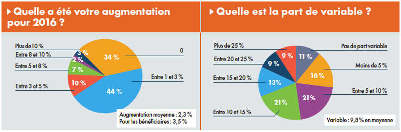 «Elle résulte notamment de l’évolution de l’échantillon des trésoriers interrogés, explique Véronique Nassour, déléguée générale de l’AFTE. Cette année, 40 % des sondés ont en effet plus de 45 ans, contre 28 % l’an dernier. En outre, 30 % des répondants disposent de plus de 20 ans d’expérience dans la finance d’entreprise, contre seulement 17 % en 2015. La plus forte présence de ces collaborateurs expérimentés au sein de la population étudiée augmente ainsi mécaniquement le niveau moyen des rémunérations.» Malgré tout, les jeunes profils étant également représentés – 17 % des trésoriers sondés ont moins de 35 ans –, la hausse de salaires constitue bel et bien une tendance notable dans la profession de trésorier. «Alors que les rémunérations avaient respectivement progressé de 2,1 % et de 1,8 % en 2014 et en 2015, elles ont été globalement revalorisées de 2,3 % cette année, poursuit Véronique Nassour. Parmi les 66 % de collaborateurs interrogés qui ont bénéficié de ces augmentations pour 2016, la hausse moyenne a atteint 3,5 %, contre seulement 2,3 % douze mois plus tôt (voir graphique).»