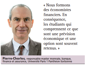 Et les masters en finance n’échappent pas au phénomène. « Nous recevons désormais chaque année plus de 2 000 candidatures à l’entrée du M1 pour seulement 150 places en master 2 (M2) », constate Pierre-Charles Pradier, responsable du master monnaie, banque, finance et assurance à l’Université Paris 1 Panthéon-Sorbonne.
