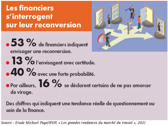 Malgré les promesses de plans de carrière attractifs et des niveaux de revenus souvent élevés, les professionnels de la finance sont de plus en plus nombreux à s’interroger sur la poursuite de leur parcours professionnel. Des réflexions qui amènent certains à changer radicalement de voie.