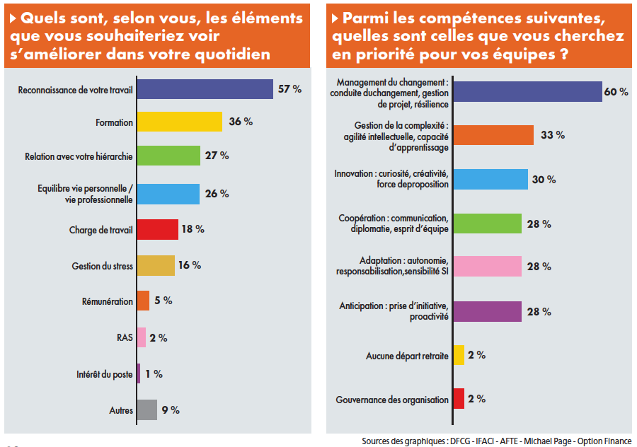 - Parmi les compétences recherchées pour leurs équipes, la gestion du changement arrive en tête de liste pour 60 % des directeurs interrogés. Il est vrai que cette qualité fait partie du quotidien des auditeurs internes (gestion de projets dans le cadre de la mise en place de nouvelles procédures, par exemple, capacité à prendre en compte les nouveaux risques…).