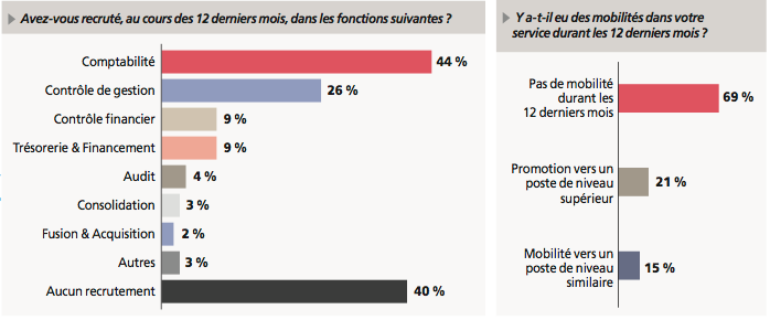 Les directeurs financiers ont dû tout de même commencer à recruter davantage en 2014. Si en 2013, 45 % d’entre eux n’avaient procédé à aucun recrutement au cours des 12 mois précédents, ils ne sont plus que 40 % dans ce cas cette année. «Ces chiffres traduisent en partie le fait que les collaborateurs des directions financières, après avoir attendu pendant plusieurs années une amélioration du contexte économique pour changer de poste, ont finalement décidé de saisir les opportunités de carrière qui se présentaient, explique Mikaël Deiller. En conséquence, les directeurs financiers ont été amenés à remplacer les postes laissés vacants.»