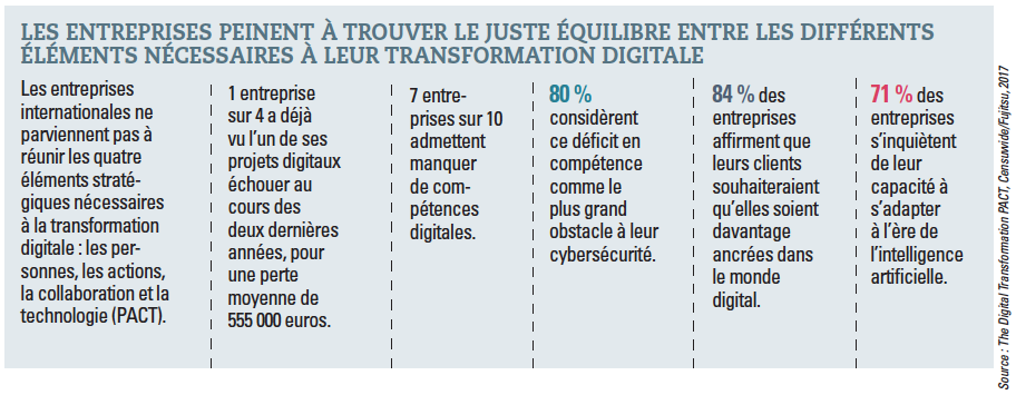 Le succès des projets de transformation digitale des entreprises passera autant, si ce n’est davantage, par la prise en compte de l’humain que par les nouvelles technologies. Leur mise en place nécessite donc une évolution des mentalités, des méthodes de travail, ainsi que des capacités à manager ou à être managé différemment. Pourtant, malgré les enjeux du numérique, les entreprises sont encore trop peu nombreuses à placer l’humain au cœur de leurs projets digitaux.