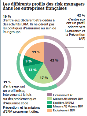 Pour bien appréhender l’étendue du périmètre qui peut être sous la responsabilité du risk manager, l’Amrae a classé les risques en trois grandes familles qui ont chacune de nombreuses ramifications : les risques stratégiques et externes, les risques opérationnels et les risques transverses. De la mise en place d’un business model à la cybercriminalité en passant par les mouvements sociaux ou la défaillance d’un fournisseur, le spectre est très large. Ce positionnement se traduit aussi par une évolution du profil des risk managers au sein de leur entreprise. C’est en tout cas ce que laisse percevoir le Baromètre du risk manager. En effet, parmi les professionnels interrogés, un nombre croissant d’entre eux (39 % contre 31 % lors de la précédente enquête en 2011) possède un profil mixte intervenant à la fois sur des problématiques d’assurance et de prévention (AP) et sur les missions d’ERM (gestion globale des risques). Les rédacteurs de l’étude estiment que l’augmentation de la proportion d’AP/ERM «pourrait s’expliquer par une certaine maturité du dispositif de gestion de risques [au sein des entreprises]. Ce qui permettrait aux risk managers d’accroître leur périmètre d’activité».