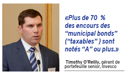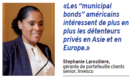 Même au sein des marchés développés, les assureurs européens peuvent encore trouver des actifs obligataires attrayants pour diversifier leurs actifs. Les “municipal bonds” américains sont un exemple particulièrement intéressant et qui s’ouvre de plus en plus aux investisseurs étrangers. «Avec 59 milliards de dollars US sous gestion, Invesco est le cinquième plus grand gérant et même la troisième contrepartie la plus active sur ce marché de 3 800 milliards de dollars d’encours. Les ‘munis’ restent principalement aux mains de détenteurs privés américains, mais on observe une montée de l’intérêt en Asie ou en Europe», explique Stephanie Larosiliere, gérante de portefeuille clients senior chez Invesco. «Il s’agit d’obligations émises par des États américains ou des collectivités territoriales, détaille Tim O’Reilly, gérant de portefeuille senior chez Invesco. Pour les investisseurs étrangers, l’intérêt réside principalement dans les titres dits “taxables” : un marché de 540 milliards de dollars.»