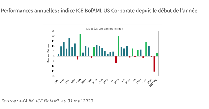 Le marché américain Investment Grade a enregistré de solides rendements, contribuant ainsi à inverser les rendements négatifs observés en 2022 pour revenir en territoire positif cette année, le revenu ayant pris le dessus.