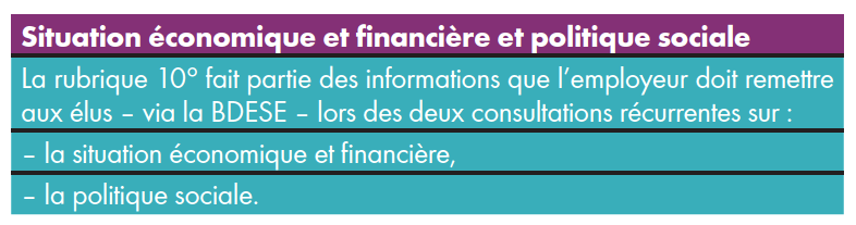 En l’absence d’accord collectif relatif à la BDESE, le contenu supplétif de celle-ci est enrichi d’une 10e rubrique (art. R. 2312-8).