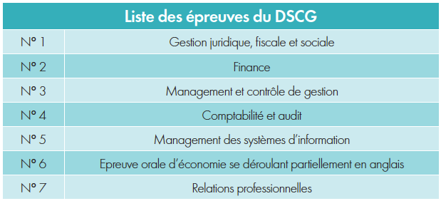 Le DSCG comprend 7 épreuves dont la liste est la suivante :