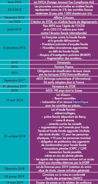 L’histoire commence en 2008, année de crise financière sans précédent. C’est le point de départ d’une mutation du paysage fiscal français et, plus globalement, international : tout converge vers un élargissement des capacités de contrôle fiscal international, un alourdissement des obligations déclaratives des contribuables, un renforcement des sanctions et de la répression pénale des manquements fiscaux.