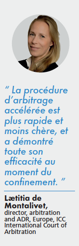 Cela, les institutions telles que la CCI l’ont bien compris, et la crise n’a fait qu’accentuer une tendance déjà bien ancrée, notamment au travers de la procédure d’arbitrage accélérée. « Il s’agit d’une procédure plus rapide et moins chère, qui a démontré toute son efficacité au moment du confinement », affirme Lætitia de Montalivet, director, arbitration and adr, Europe, icc International Court of Arbitration. A tel point que le seuil initialement fixé à 2 millions de dollars est passé à 3 millions depuis 2020. « Cela répond à une demande de davantage de souplesse de la part des entreprises. Il faudra en revanche trouver un équilibre entre le tout distanciel et le présentiel. »