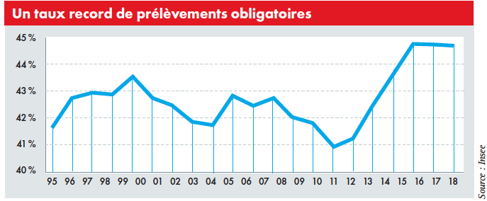 Pour beaucoup, en effet, ces annonces sont considérées comme un sparadrap sur un mal beaucoup plus profond : les Français ont le sentiment qu’ils paient trop d’impôts par rapport aux bénéfices qu’ils en retirent. Il est vrai que leur poids a atteint des sommets : en 2017, le montant des prélèvements obligatoires a dépassé la barre symbolique des 1 000 milliards d’euros. La part des impôts et des différentes taxes auxquels ont été soumis les Français l’année dernière représentait très exactement 1 038 milliards d’euros soit 45,3 % du produit intérieur brut. Ce montant était supérieur de 43,3 milliards à celui de 2016 et surtout de 368,5 milliards à celui de 2002, selon Joël Giraud, rapporteur général de la Commission des finances de l’Assemblée nationale. A ce record peut d’ailleurs s’ajouter le premier rang de la France parmi les pays de l’OCDE en termes de prélèvements obligatoires.