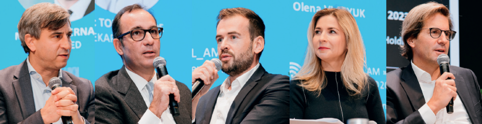 Avec de gauche à droite : David Chekroun (modérateur), professor of international business law, Escp Business School, Marc-Elie Bernard, group M&A director, Edenred, Michael Chalchat, directeur M&A, Id Logistics, Olena Vlasyuk, head of M&A and transaction solutions France, Aon France, Eric Toulemonde, founding partner, Ekapartners