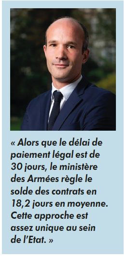 Le ministère des Armées est le premier acheteur de l’Etat. Tous les ans, il dépense, en moyenne, 20 milliards d’euros dans le secteur privé. Ce montant est réparti entre des dépenses d’infrastructures, d’environ 8 milliards d’euros (construction de locaux d’hébergement pour les militaires, de hangars, d’habillement…), et celles destinées à l’armement, à hauteur de 12 milliards d’euros (achats d’avions de combat, chars, drones…). Bien évidemment, lorsque l’on évoque la défense, le premier réflexe est de penser à de grands groupes industriels français, tels que Dassault, Thalès ou Naval Group. On sait peu que 22 000 start-up, PME et ETI ont également travaillé pour le ministère par le biais de contrats d’achats (soit par appel d’offres soit en gré à gré) pour un montant de 5,03 milliards d’euros en 2019 (+ 8,3 % par rapport à 2018) et conclus en direct avec elles. Au total, ces contrats, indispensables pour nos opérations militaires, représentent 25 % à 30 % de nos investissements chaque année.