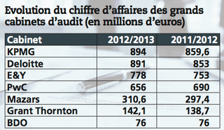 Ce n’est pas l’euphorie dans les cabinets d’audit ces derniers temps. Croissance économique française en berne, budget conseil des entreprises serré ou inexistant, pression à la baisse sur les honoraires d’audit. Pour autant, presque tous les cabinets affichent sur 2012-2013 une croissance comprise entre 3,3 et 4,5 %.