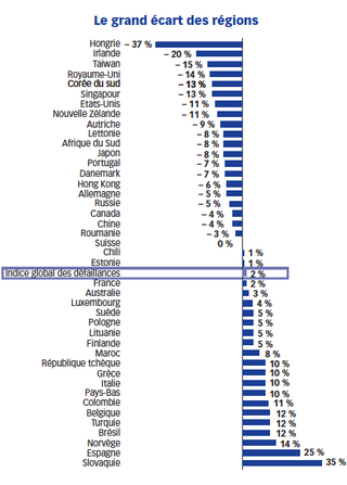 – l’Europe de l’Ouest (+ 9 %), avec des faillites toujours en hausse dans un grand nombre de pays malgré les exceptions allemande et britannique.