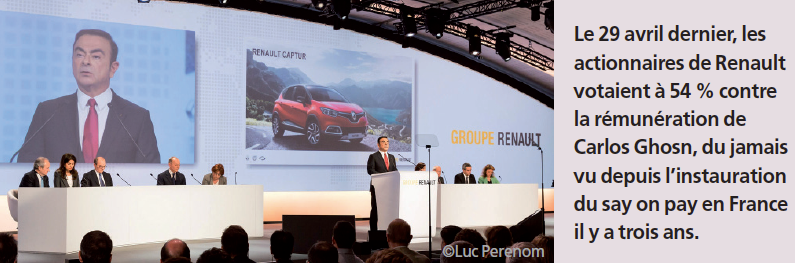 C’est un passage en force qui ne passe pas. Le 29 avril dernier, les actionnaires de Renault votaient à 54 % contre la rémunération de 7,25 millions d’euros accordée au président-directeur général Carlos Ghosn au titre de l’exercice 2015, du jamais vu depuis l’instauration du say on pay en France il y a trois ans. Mais en dépit de cette opposition, le conseil d’administration du constructeur automobile a décidé de maintenir l’enveloppe inchangée, à l’issue d’une réunion qui aurait duré… une quinzaine de minutes ! «Par cette action, les administrateurs donnent aux marchés l’image d’une entreprise n’étant pas à l’écoute de ses actionnaires, ce qui est de nature à affecter durablement sa réputation», indique Fabrice Rémon, fondateur de Gouvernance en Action.