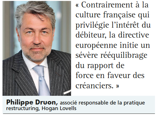 Lancée fin 2020 par la Chancellerie avec l’appui du Trésor, la consultation portant sur la transposition de la directive européenne sur les entreprises en difficulté s’est achevée la semaine dernière. Il est peu dire que l’exercice a mobilisé les spécialistes en restructuring, ceux-ci ayant inondé l’administration de commentaires et de propositions. A quelques mois de la date butoir de l’adoption du texte, fixée en juillet, cet engouement n’a rien d’étonnant. Même si la directive en question, qui vise à promouvoir les outils de prévention, s’inspire en partie de la pratique française et de ses procédures de conciliation et de mandat ad hoc, elle n’en constitue pas moins une petite révolution aux yeux des praticiens. « Depuis la loi de 1967 réformée en 1985, la France dispose d’un régime de traitement des entreprises en difficulté très protecteur de l’entreprise, dont l’efficacité n’a pas d’équivalent à l’étranger, rappelle Philippe Druon, associé responsable de la pratique restructuring chez Hogan Lovells. Or, contrairement à cette culture française qui privilégie l’intérêt du débiteur, la directive européenne initie un sévère rééquilibrage du rapport de force en faveur des créanciers. »