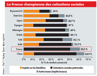 Les prélèvements obligatoires pour les entreprises sont nettement supérieurs à ceux constatés en moyenne à l’étranger, notamment en raison du poids très élevé des cotisations patronales. Mais au-delà des niveaux d’imposition, c’est aussi le manque de stabilité et de lisibilité de la fiscalité française qui pénalise les entreprises.