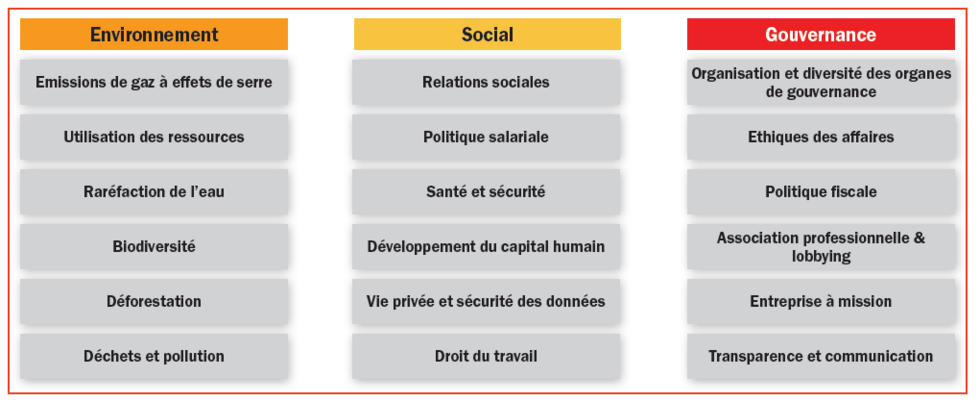 - Sur la base de ce constat nous avons essayé néanmoins de poser quelques idées et repères qui permettent d’appréhender l’impact des facteurs ESG sur la valeur financière d’une entreprise.