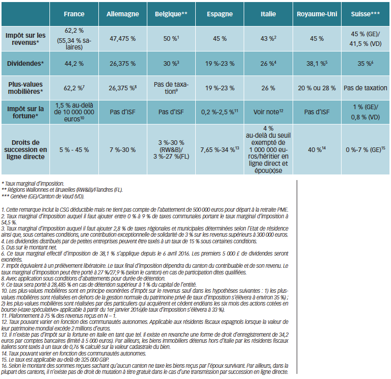 Force est de constater que, même si l’on note des évolutions allant dans le sens d’un durcissement de la fiscalité des personnes physiques au sein de certains Etats membres de l’UE, la France demeure en tête des Etats ayant en taux marginal la pression fiscale la plus importante en matière de fiscalité des ménages.