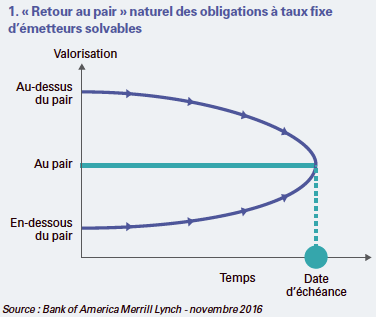 Une approche ciblée sur les obligations high yield à maturité courte peut s’avérer plus défensive qu’un fonds high yield traditionnel avec indice de référence. Cela est essentiellement dû au phénomène du «retour au pair» (cf. graphique 1).
