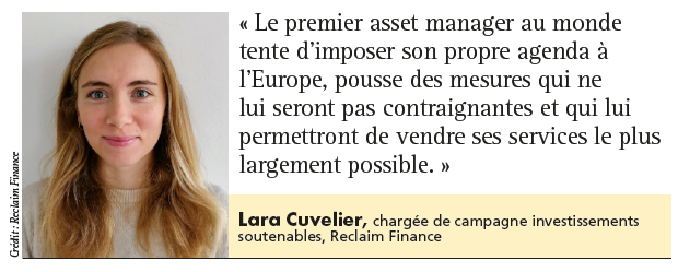 Des ONG dénoncent de nombreuses similitudes entre la nouvelle stratégie de finance durable de l’Union européenne et les conclusions d’un rapport rédigé par la division conseil du gérant américain.