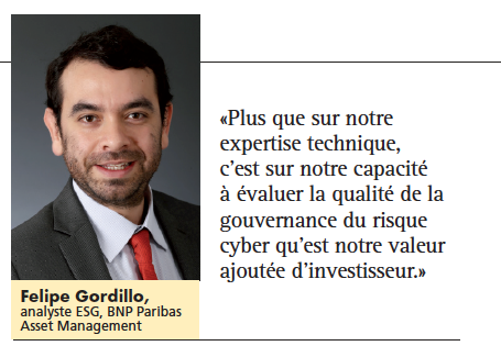 Les cyber-attaques coûtent cher aux entreprises… mais aussi à leurs investisseurs. Lorsque le spécialiste des cartes de crédit américain Equifax annonce, début septembre 2017, le vol des données personnelles de quelque 145 millions de clients, son cours de Bourse perd, en deux semaines, plus de 30 % de sa valeur. Un an et demi plus tard, l’action n’a pas retrouvé son niveau d’avant l’attaque. Une réalité que ne peuvent plus ignorer les gérants qui s’organisent pour renforcer leur analyse du risque cyber des sociétés en portefeuille. «Lorsque nous investissons dans une société, nous nous exposons au cyber-risque à travers plusieurs vecteurs, précise Felipe Gordillo, analyste ESG chez BNP Paribas Asset Management. Les cyber-attaques peuvent créer des ruptures opérationnelles dans l’activité de l’entreprise et, dans le cas d’un vol de données, entamer la confiance de ses clients, ce qui entraîne des coûts très significatifs et peut remettre en question la viabilité de son modèle économique. A cela s’ajoutent la pression réglementaire, avec des textes européens comme la directive NIS (Network and Information System Security) ou le RGPD (règlement européen sur la protection des données), et le risque de sanction financière en cas de non-conformité. Ce sont des enjeux croissants et tout à fait significatifs pour un investisseur, et nous en tenons de plus en plus compte dans nos analyses.»