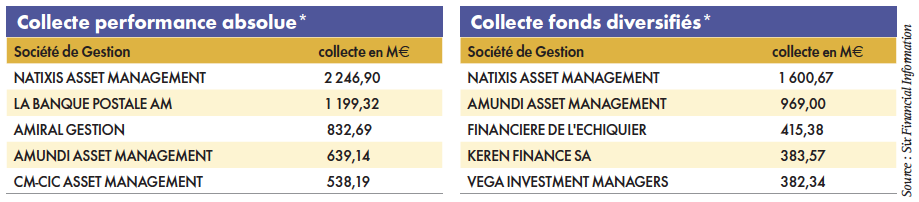 La collecte a été importante en 2017 dans les fonds de droit français, elle a surtout profité aux filiales de groupes bancaires et assurantiels. Quelques rares sociétés de gestion indépendantes sont tout de même parvenues à se distinguer et à collecter de façon significative. A noter aussi, l’engouement des particuliers et des institutionnels pour les fonds gérés en performance absolue.