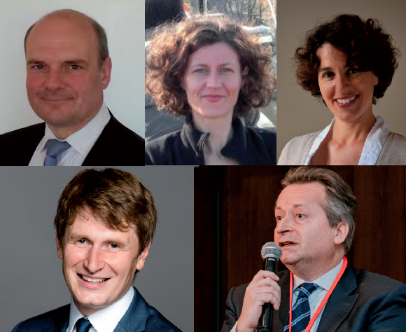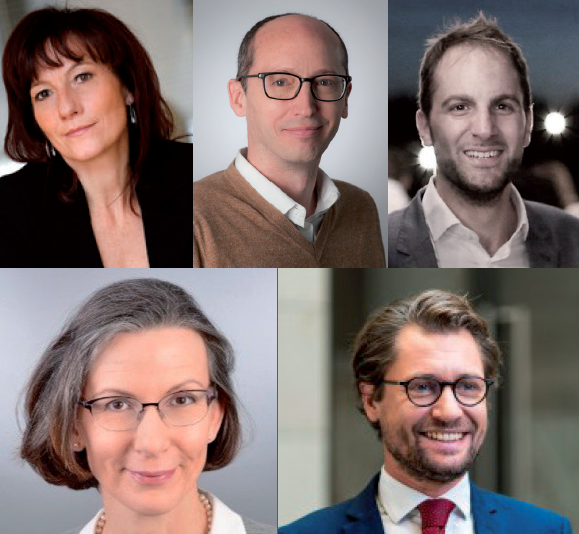 Avec de gauche à droite et de haut en bas : Jean-Bernard Ott, responsable allocation et politique ESG, CAVP (Caisse d’assurance vieillesse des pharmaciens) ; Aude Verriès, head of SRI risks and governance departement, CNP Assurances ; Emmanuelle Gérino (modératrice), vice-présidente, CNCEF (Chambre nationale des conseils experts financiers) ; Adrien Dumas, CIO - directeur des investissements, Mandarine Gestion ; Jean-Philippe Desmartin, directeur de l’investissement responsable, Edmond de Rothschild Asset Management